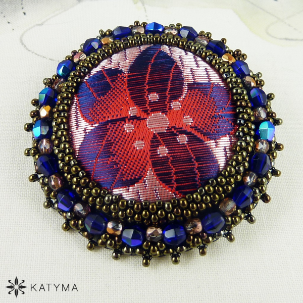 Zobrazit v plné velikosti Šitá brož s buttonkem z českého brokátu.