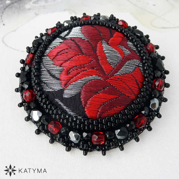 Zobrazit v plné velikosti Šitá brož s buttonkem z českého brokátu.