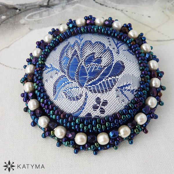 Brož je dále vyrobena z broušených korálků, voskových perliček a českého kulatého rokajlu Preciosa.