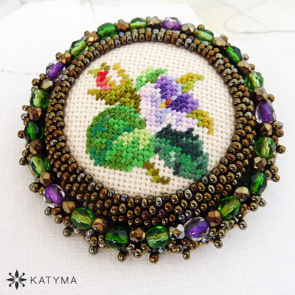 Brož je dále vyrobena z broušených korálků a českého kulatého rokajlu Preciosa.