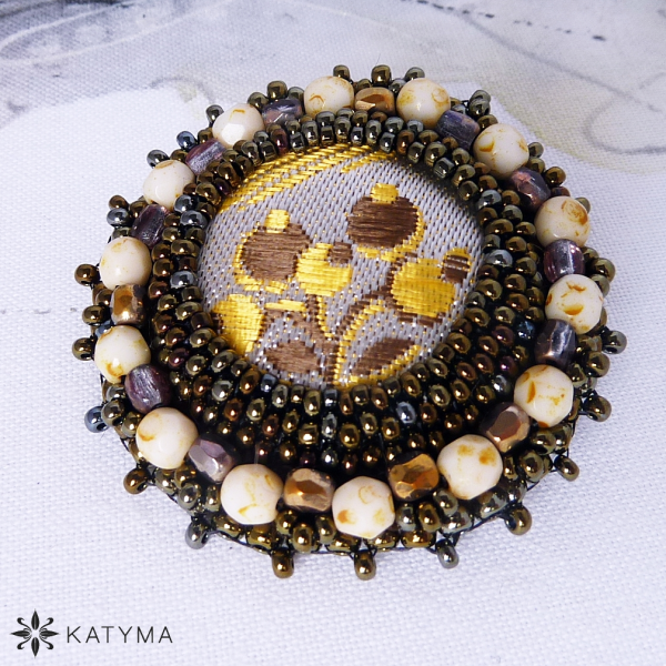 Šitá brož s buttonkem z českého brokátu.