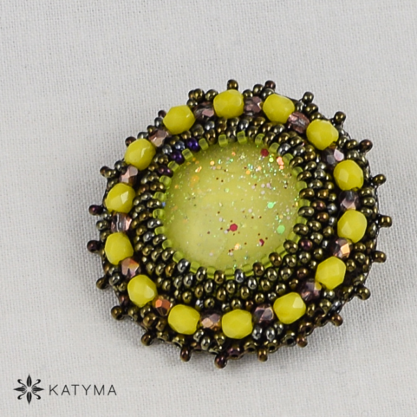 Zobrazit v plné velikosti Šitá brož s ručně malovaným kabošonem. Kabošon malovala Zuzka H. Valešová.