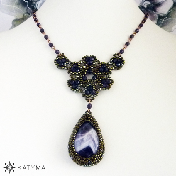 Použit je kabošon ametystu ve tvaru kapky.