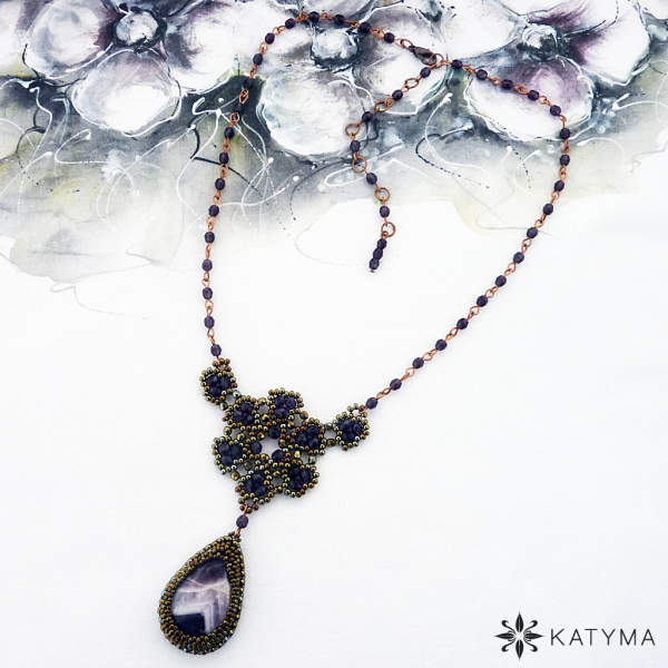 Náhrdelník má měděné zapínání na karabinku a adjustu zdobenou broušenými korálky.