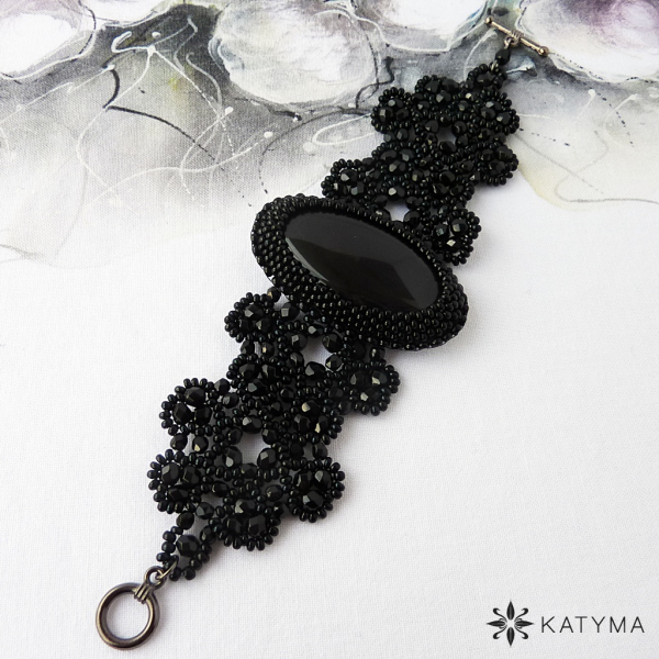 Zobrazit v plné velikosti Šitý krajkový náramek z broušených korálků a rokajlu Preciosa.