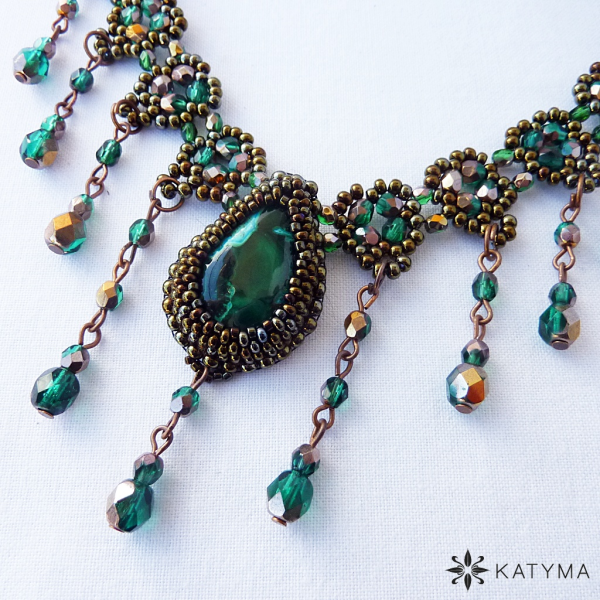 Ve špičce náhrdelníku je zapracovaná kapka chryzokol malachitu.