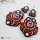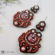 Sutaškové náušnice vytvořené z krásných dřevěných lehkých knoflíčků s červenými a černými květinkami.