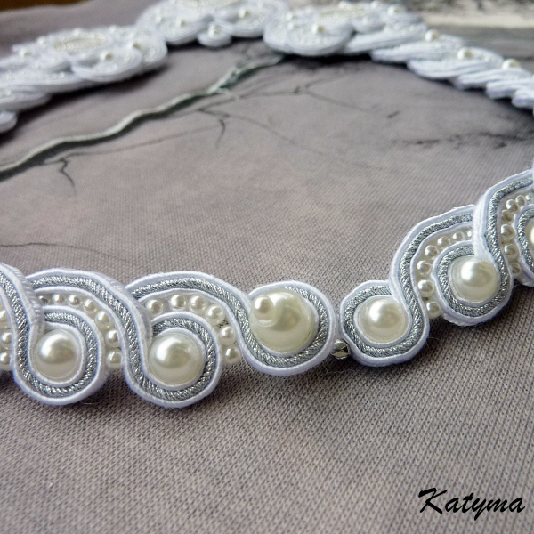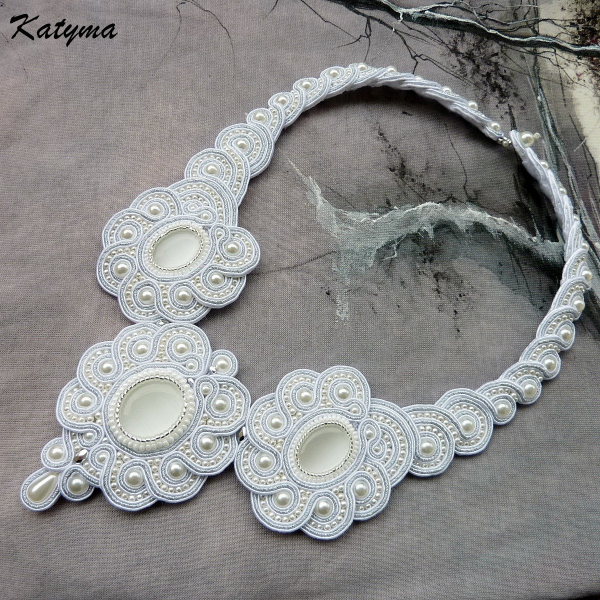 Náhrdelník je bez kovových komponentů, takže je vhodný pro alergiky. Zapínání je ozdobné vytvořené ze sutašek a bílých voskových perliček.