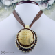 Mušle je zavěšena na organzové stužce tmavě hnědé barvy.