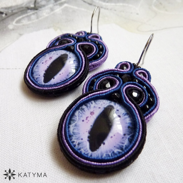 Sutaškové náušnice vytvořené z nádherných dračích očí černé a modrofialové barvy.