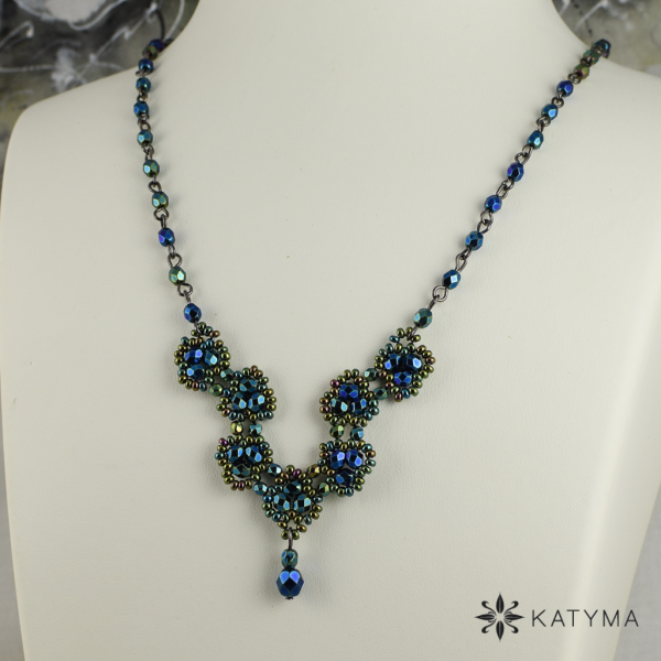 Náhrdelník vyrobený z ohňovek a kulatého českého rokajlu Preciosa.