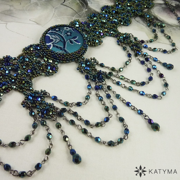 Obojek je vytvořen z broušených korálků a českého kulatého rokajlu Preciosa.