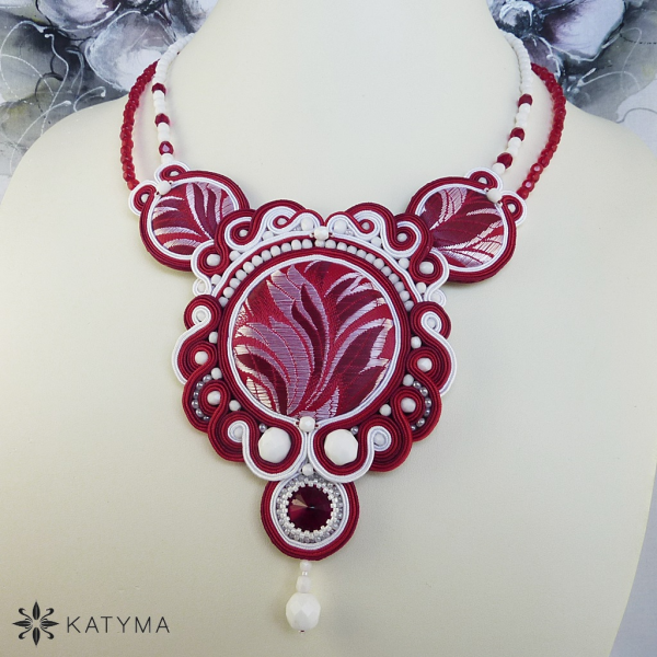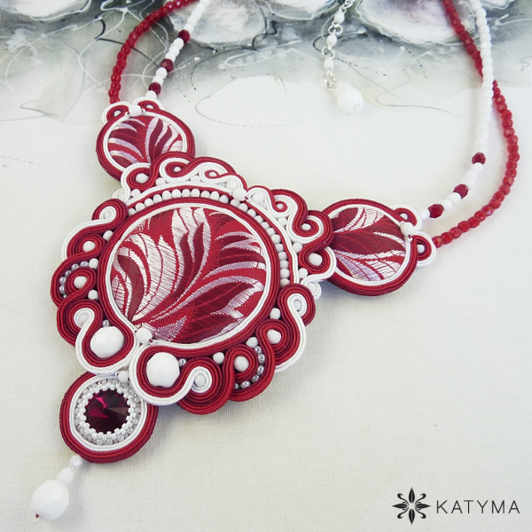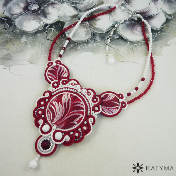 Sutašky použité na tento náhrdelník mají bílou, červenou a vínovou barvu.