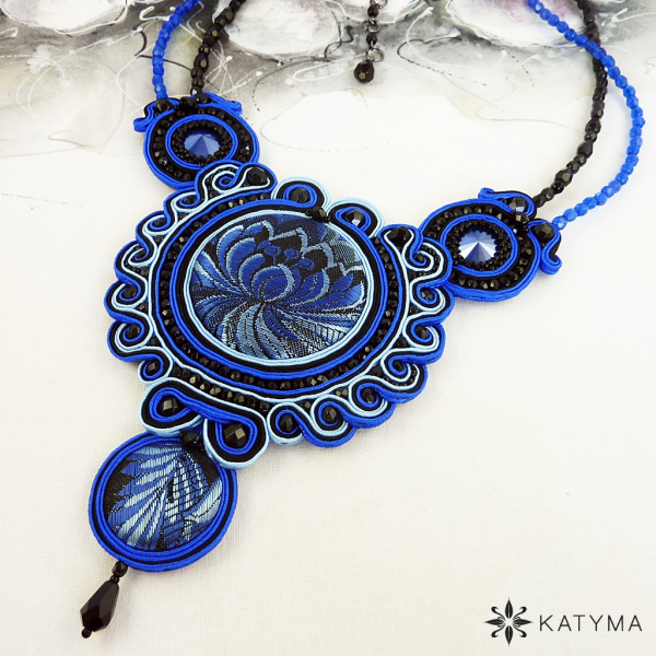 Sutašky použité na tento náhrdelník mají královsky modrou, světle modrou a černou barvu.