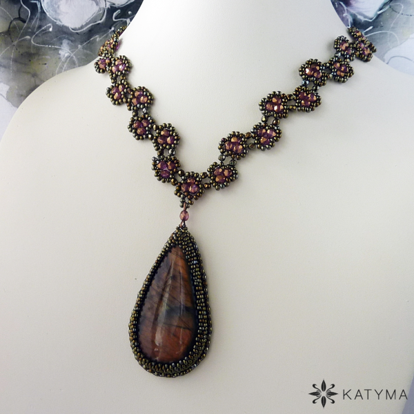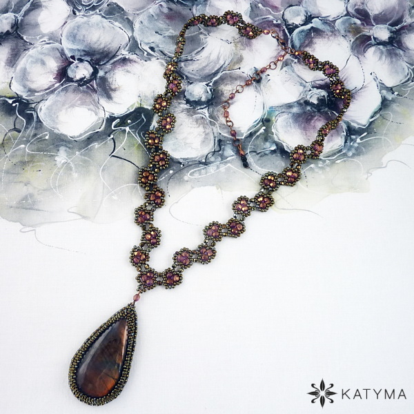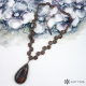 Náhrdelník je ozdoben jedinečným labradoritem ve tvaru kapky. Velikost obšité kapky je cca 3,5 cm na šířku a 6 cm na výšku.