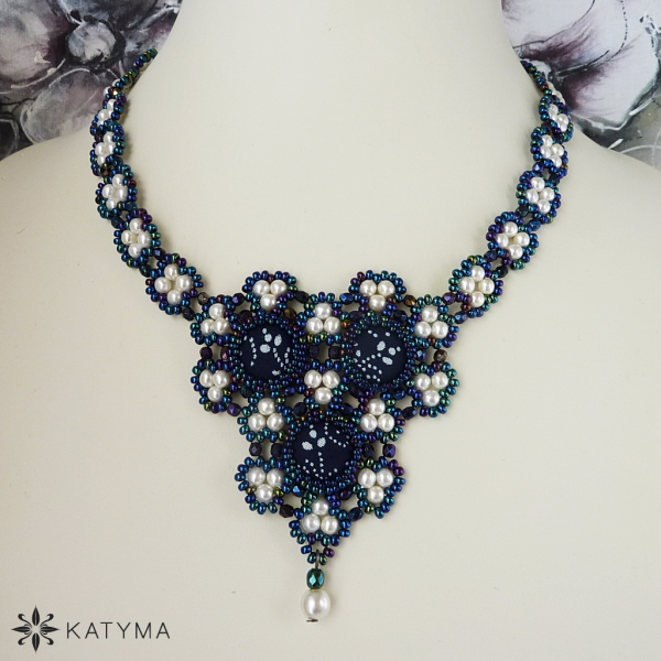 Náhrdelník je vytvořen z voskových perliček, broušených korálků a českého kulatého rokajlu Preciosa.