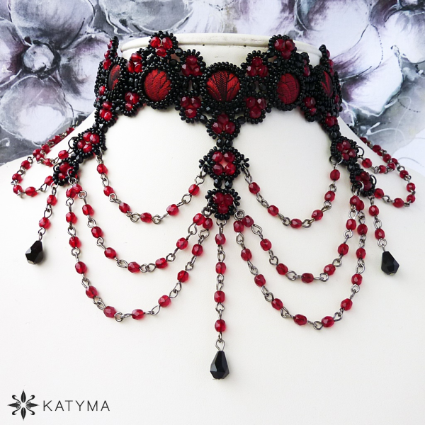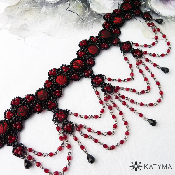 Obojek je vytvořen z broušených korálků a českého kulatého rokajlu Preciosa.