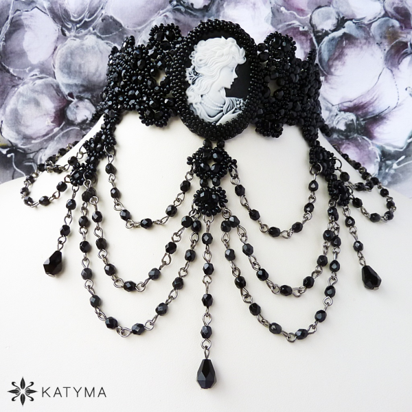 Obojkový náhrdelník s kamejí.