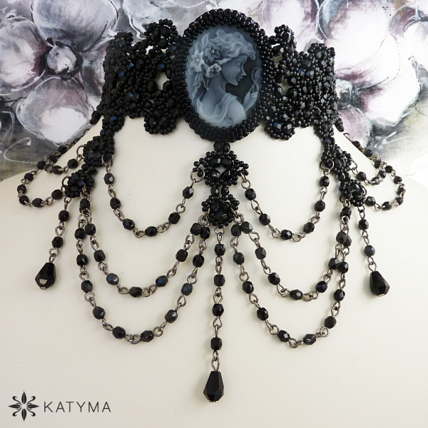 Obojkový náhrdelník s kamejí.