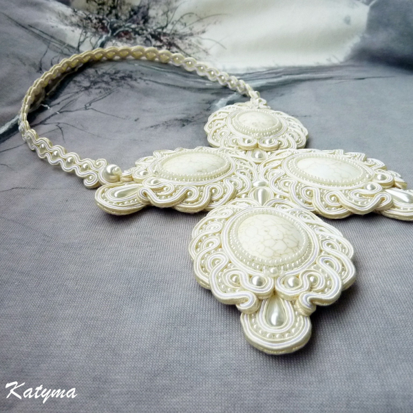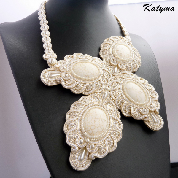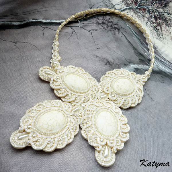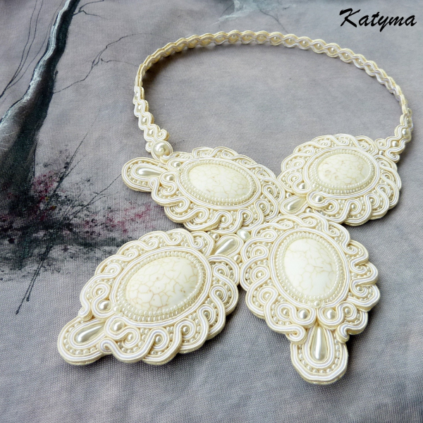 Luxusní svatební sutaškový náhrdelník vytvořený ze zajímavých smetanových kamenů.