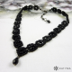 Náhrdelník má antracitové zapínání na karabinku a řetízek zdobený černými broušenými korálky a slzičkou.