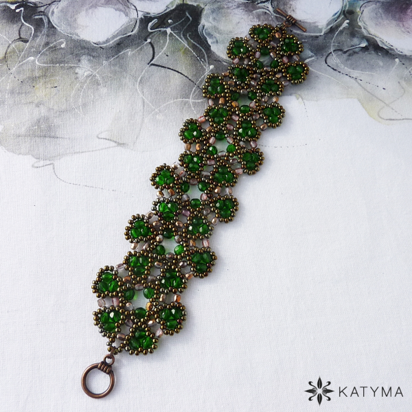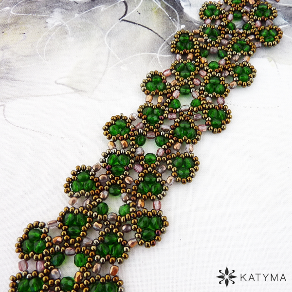 Krajkový šitý náramek z ohňovek a českého kulatého rokajlu Preciosa.