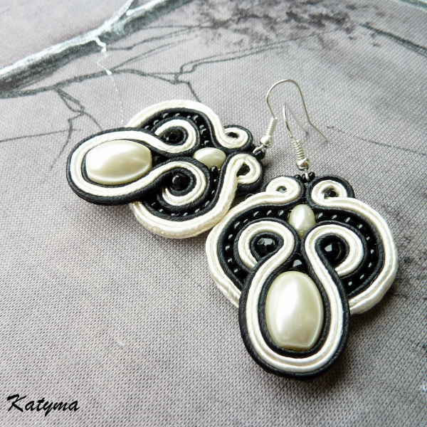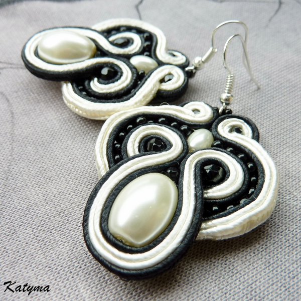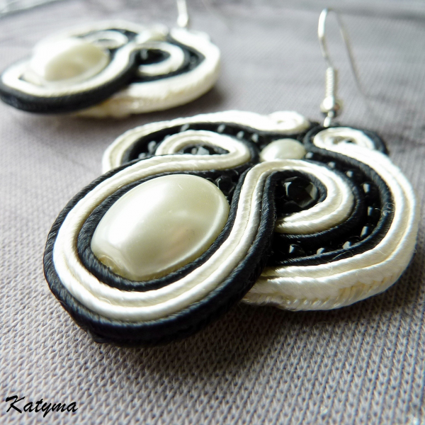 Krásné sutaškové náušnice ve smetanové a černé barvě.