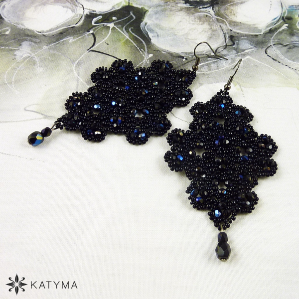 Zobrazit v plné velikosti Šité krajkové náušnice z broušených korálků a českého českého kulatého rokajlu Preciosa.