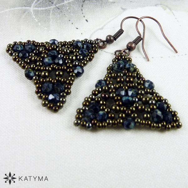 Zobrazit v plné velikosti Šité krajkové náušnice z broušených korálků a českého českého kulatého rokajlu Preciosa.