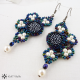 Náušnice šité z buttonků z českého modrotisku, voskových perliček, broušených korálků a rokajlu Preciosa.
