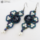 Náušnice šité z buttonků z českého modrotisku, voskových perliček, broušených korálků a rokajlu Preciosa.