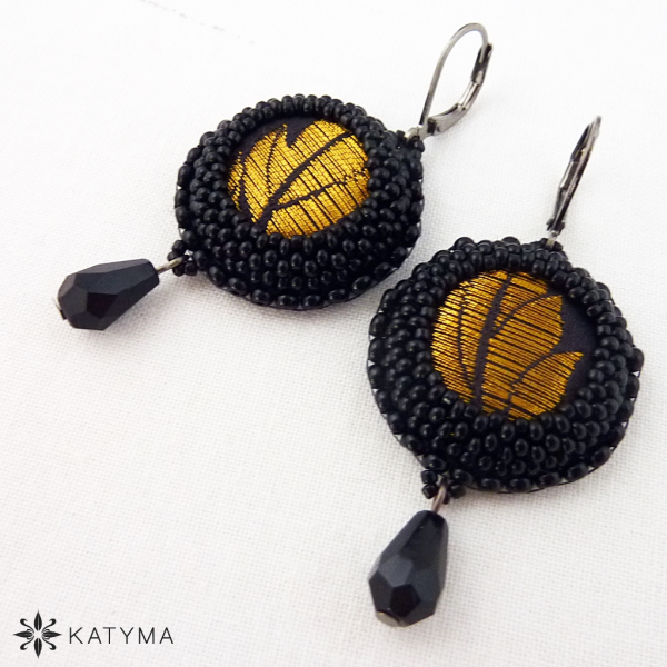 Zobrazit v plné velikosti Náušnice šité z brokátových buttonků, broušených korálků a rokajlu Preciosa.