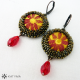 Náušnice šité z brokátových buttonků, broušených korálků a rokajlu Preciosa.