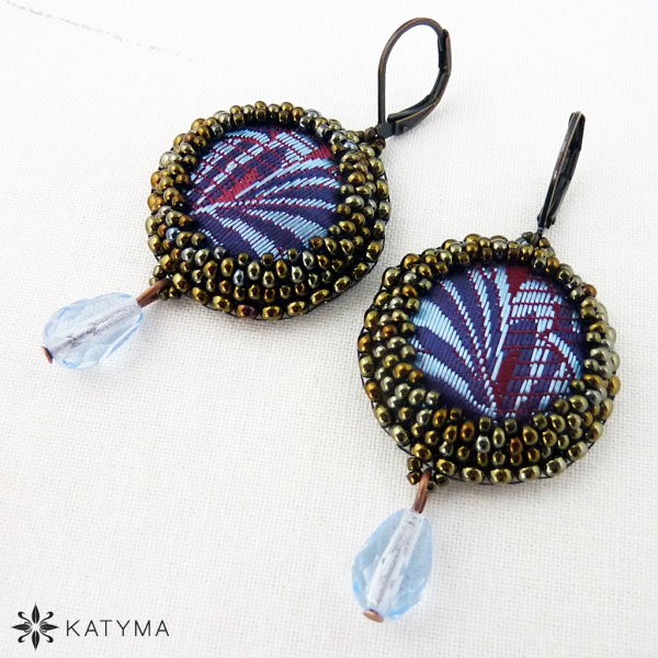 Zobrazit v plné velikosti Náušnice šité z brokátových buttonků, broušených korálků a rokajlu Preciosa.