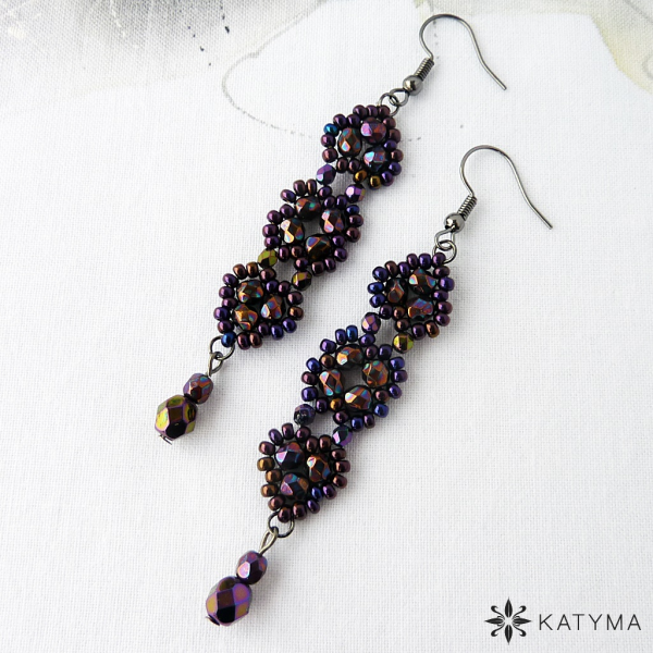 Zobrazit v plné velikosti Náušnice šité z broušených korálků a rokajlu Preciosa.