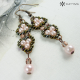 Náušnice šité z rokajlu Preciosa v barvě hnědý iris, broušených pokovených měděných korálků a růžových světlých voskových perliček.