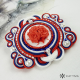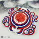 Brož je vyrobena ze sutašek bílé, jasně červené a modré barvy, českého rokajlu Preciosa v bílé, červené a modré barvě a bílých voskových perliček různých velikostí.