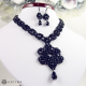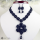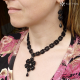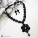 Komplet černého šitého náhrdelníku a drobných náušnic.