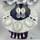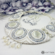 Komplet slavnostního náhrdelníku vytvořeného korálkovou výšivkou a šitých náušnic.