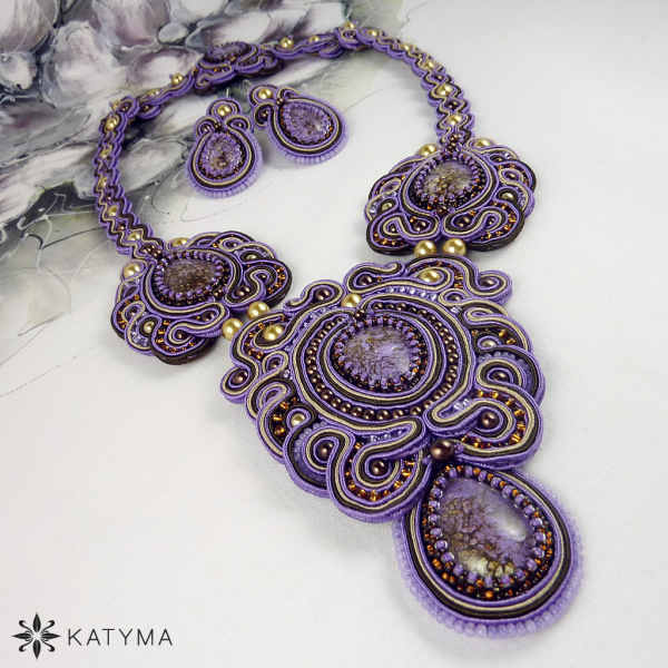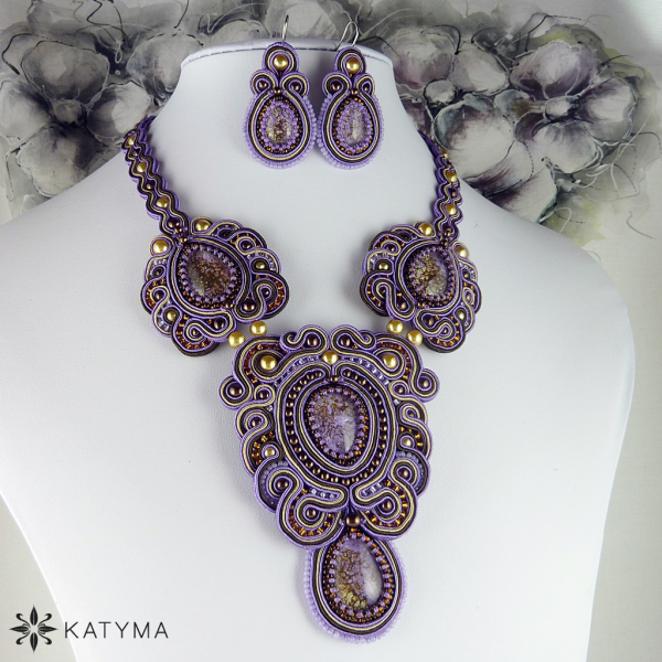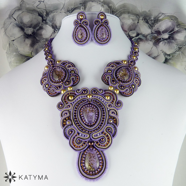 Komplet sutaškového autorského luxusního a extravagantního náhrdelníku a náušnic vytvořeného z nádherných kabošonů od Zuzany H. Valešové.