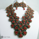 Náhrdelník je vytvořen z červených voskových perliček, černých matných ohňovek a rokajlu Preciosa v barvě hnědý iris.