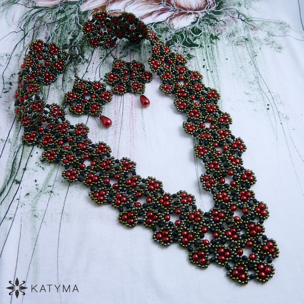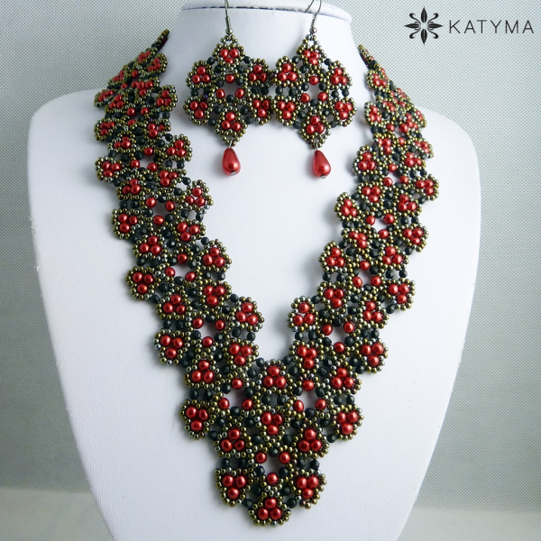 Komplet šitého náhrdelníku a náušnic