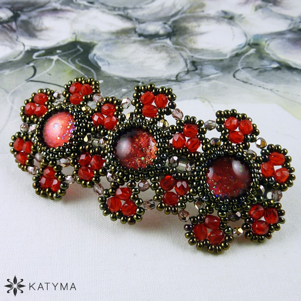 Dámská šitá francouzská spona do vlasů šitá z ručně malovaných kabošonů.