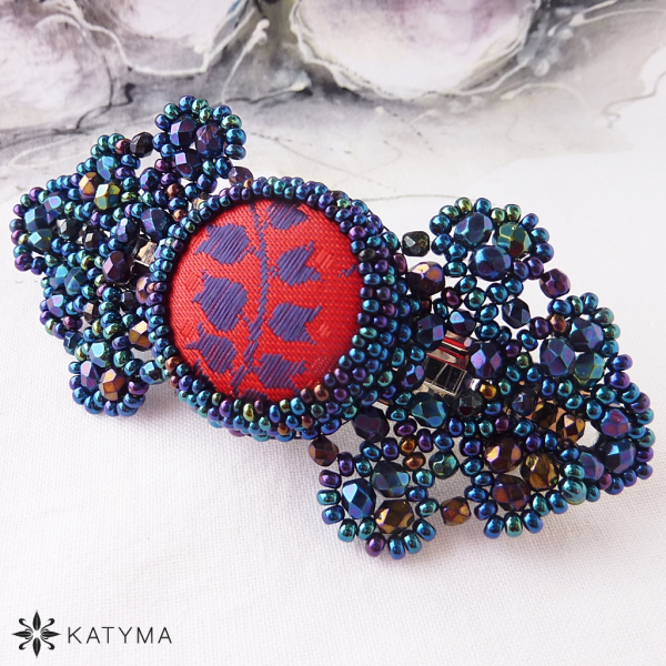 Dámská šitá francouzská spona do vlasů vytvořená z brokátového buttonku.