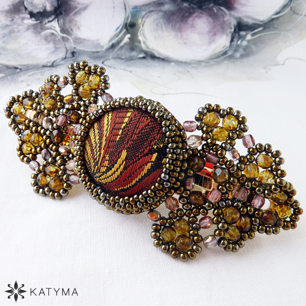 Zobrazit v plné velikosti Dámská šitá francouzská spona do vlasů vytvořená z brokátového buttonku.