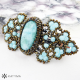 Spona je vytvořena z minerálu ve tvaru oválu. Kabošon je obšitý kulatým rokajlem Preciosa a toho-rokajlem stejné barvy.